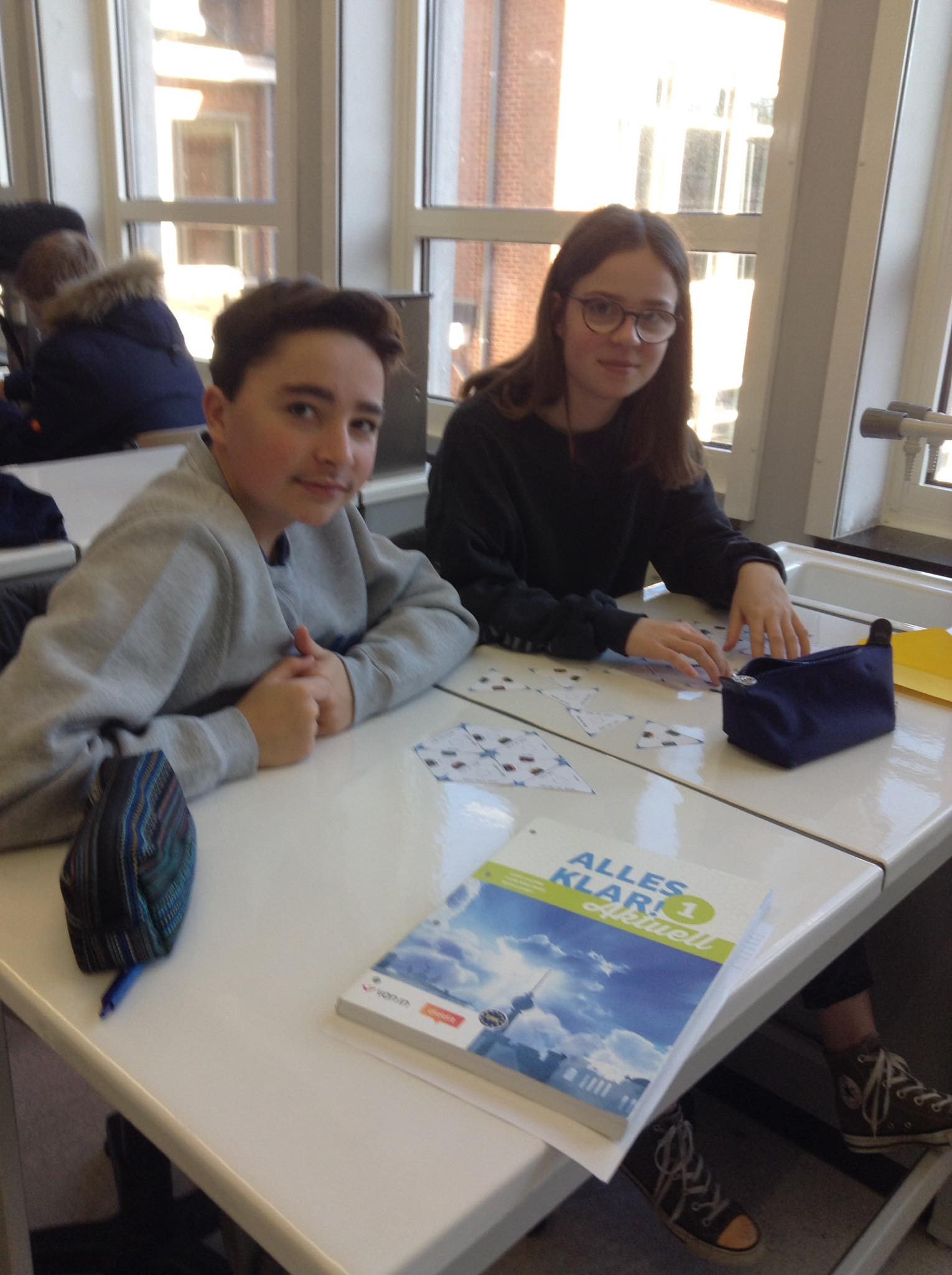 Guten Tag! De leerlingen van 3 Economie oefenden vandaag de klok in het Duits met een triminos.