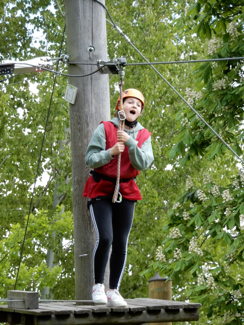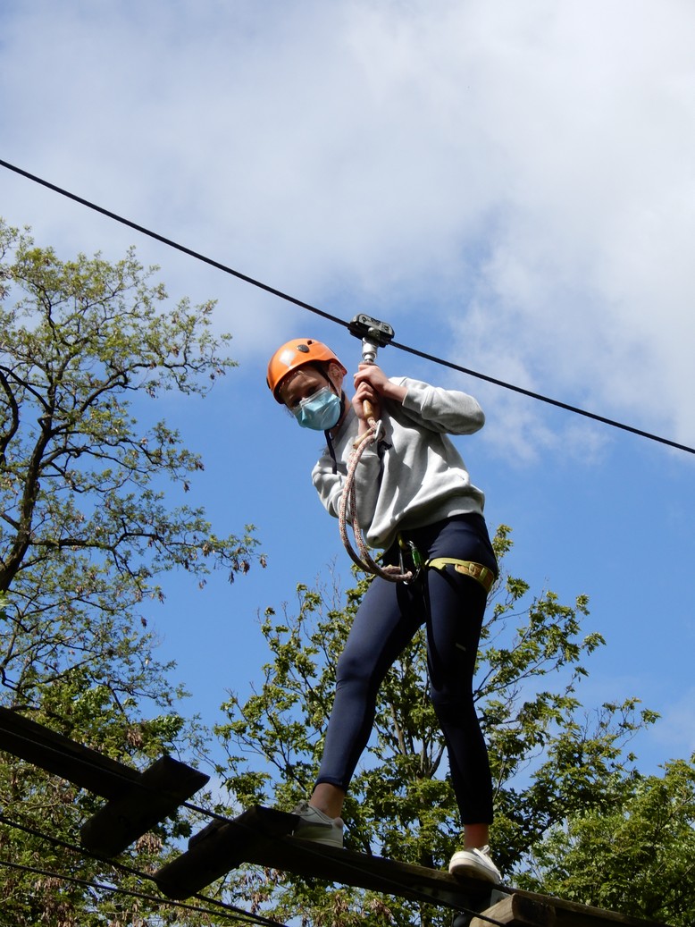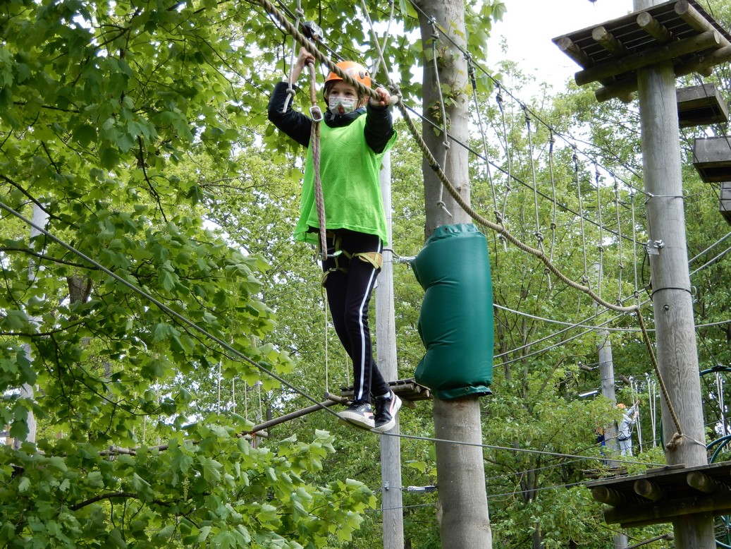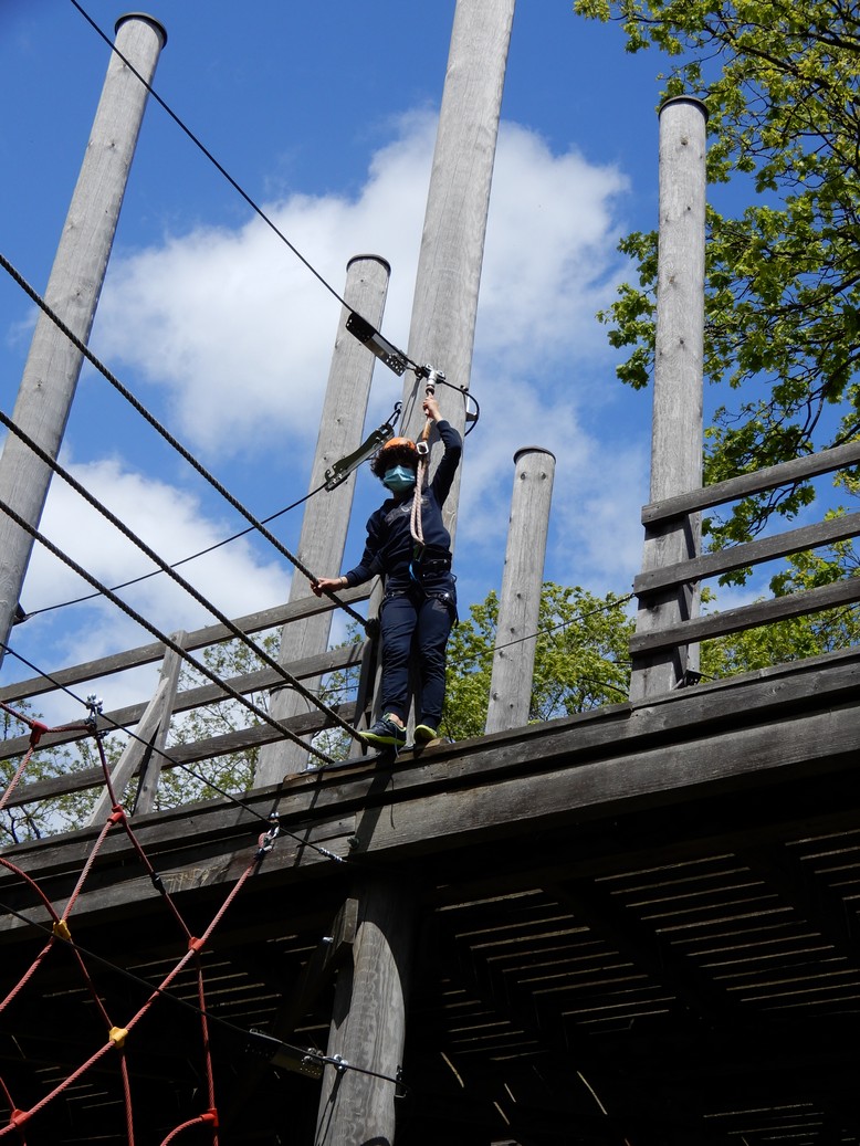 Alle leerlingen gingen op het hoogtouwenparcours. Daarnaast was er ook een activiteit op het water: kajak, zeilen met een optimistje of surfen. Het weer viel mee en iedereen genoot ervan weer eens op uitstap te kunnen. Het was een topdag!