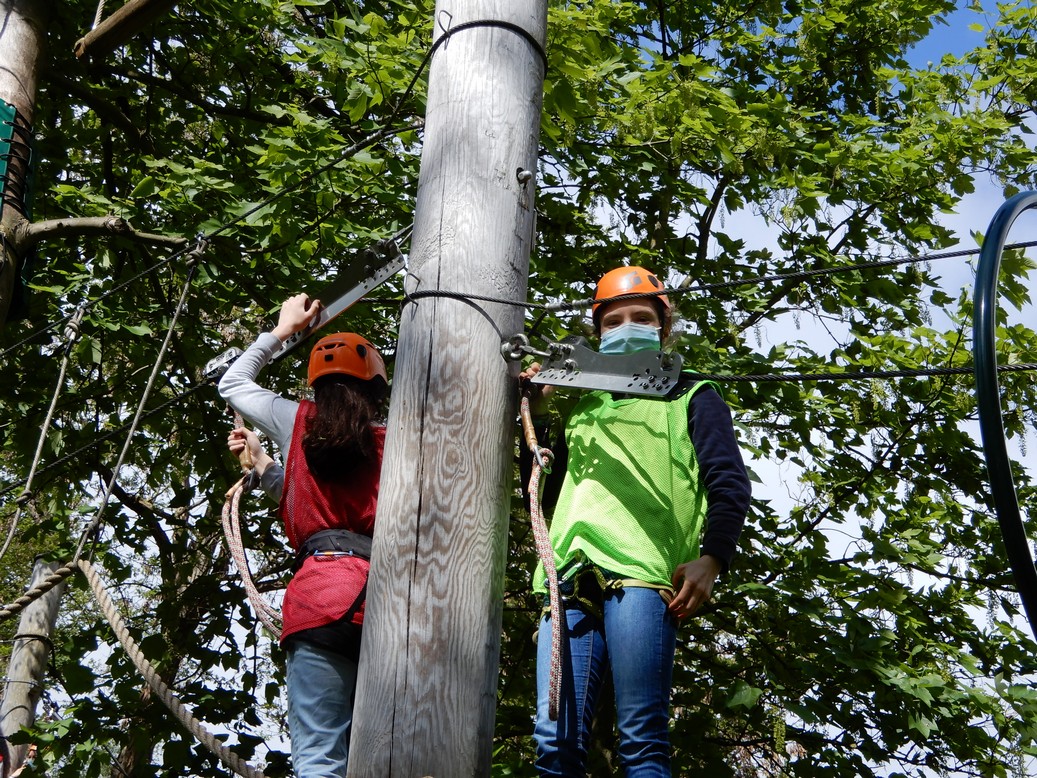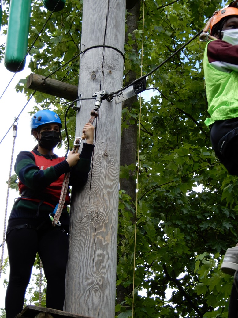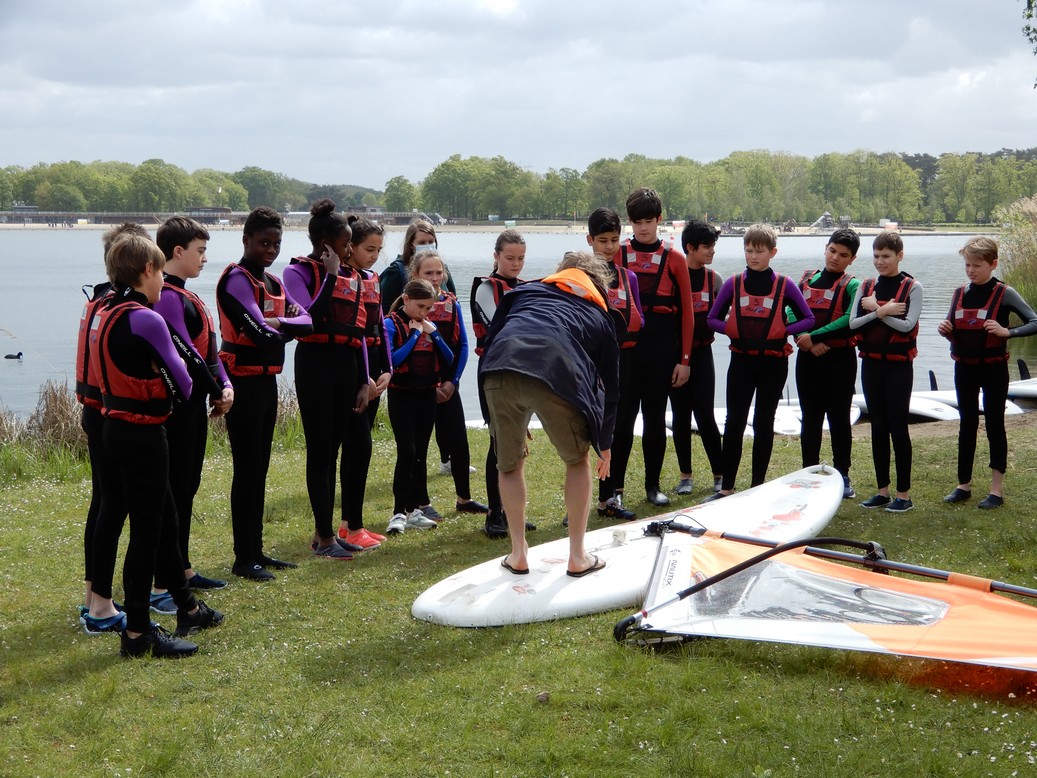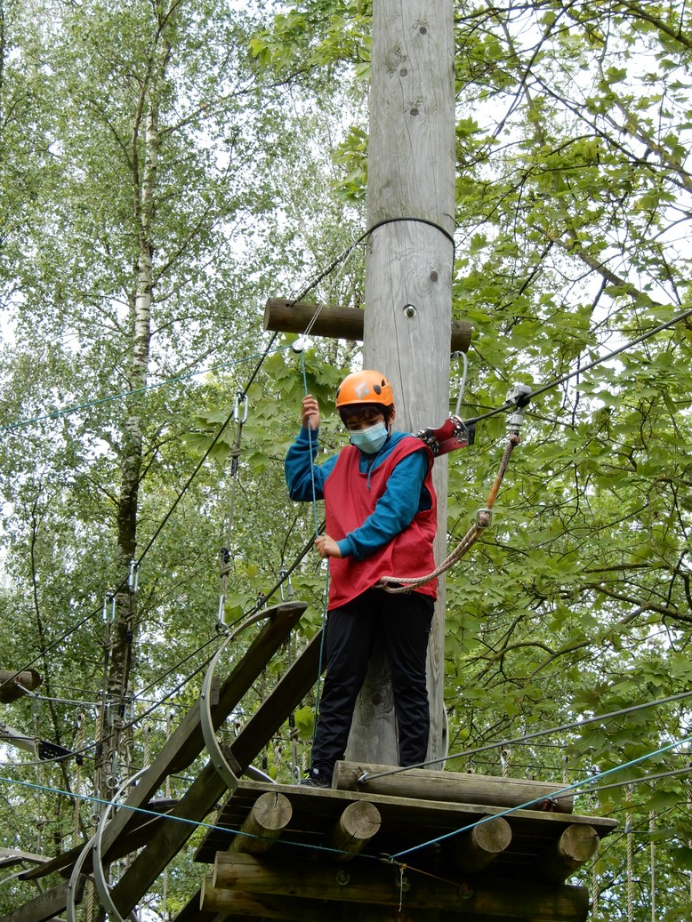 Alle leerlingen gingen op het hoogtouwenparcours. Daarnaast was er ook een activiteit op het water: kajak, zeilen met een optimistje of surfen. Het weer viel mee en iedereen genoot ervan weer eens op uitstap te kunnen. Het was een topdag!