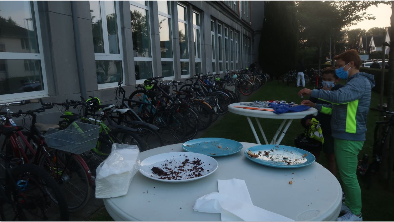 Dat deden 18 leerkrachten en 95 leerlingen - een recordaantal. Misschien werden ze gelokt door de drie cakes en gratis fluohesjes en fietsgadgets, maar alleszins bleek deze gezonde fietsactie een groot succes. Dank iedereen!